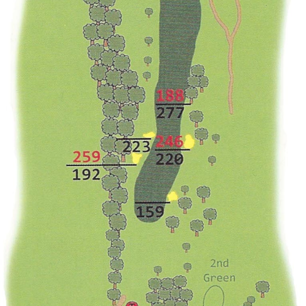Second shots should be hit to the right of the green enabling the ball to run down to an almost level putting surface.