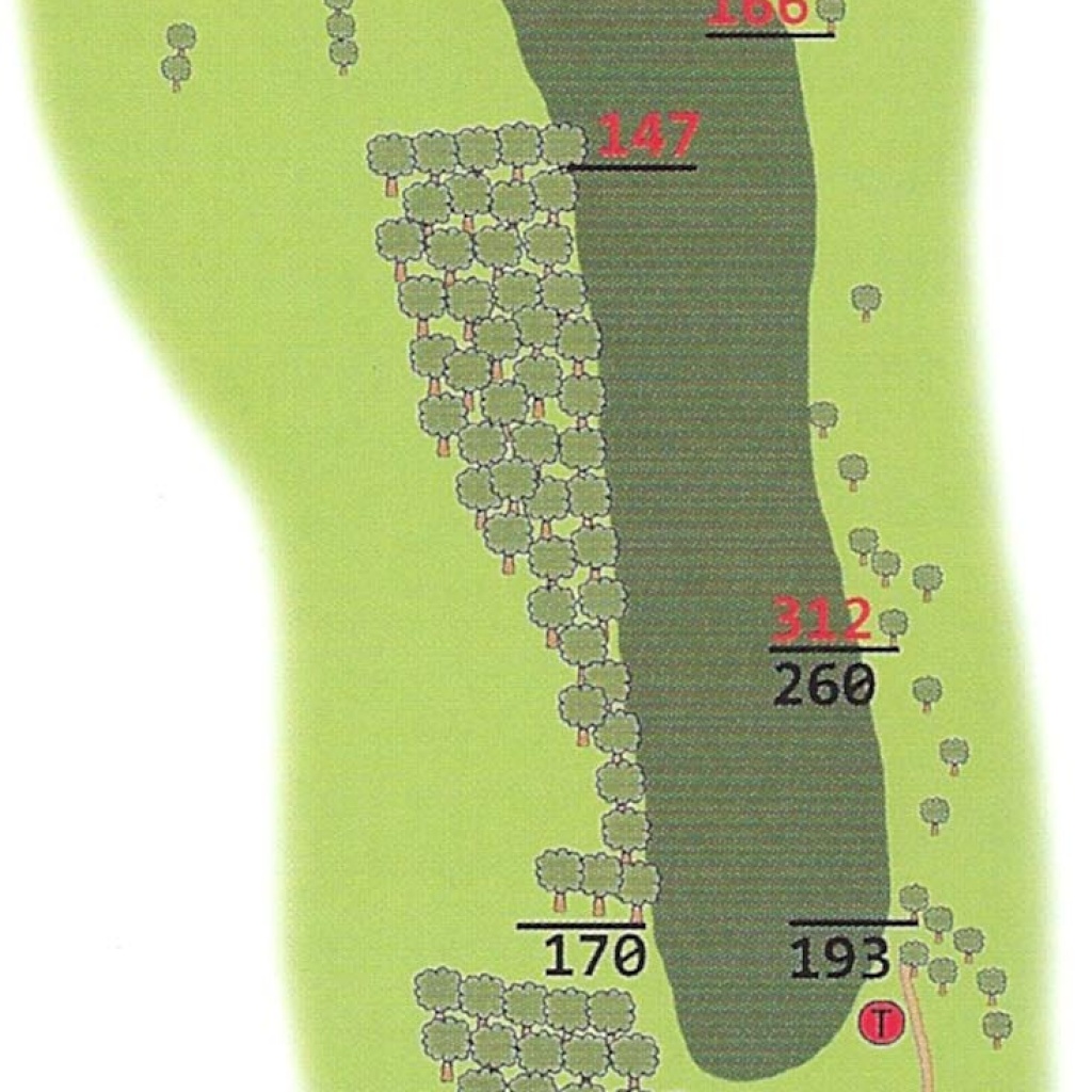 The downhill approach to the green, with a pond on its left, can either be played with a full shot to the pin or a pitch and run down to the long, narrow, level putting surface. Heavy rough is situated down the right of the green.