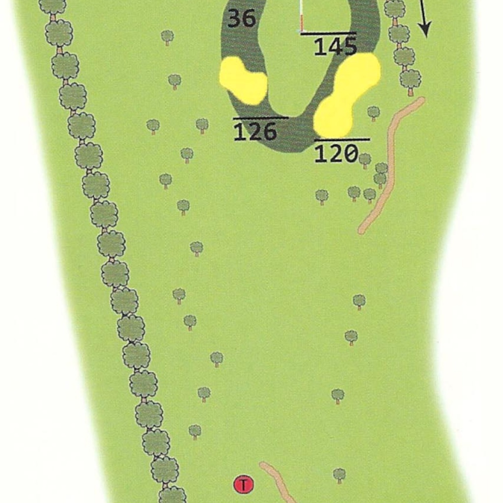 A tricky par 3 requiring the correct club selection as the green is well guarded by bunkers.